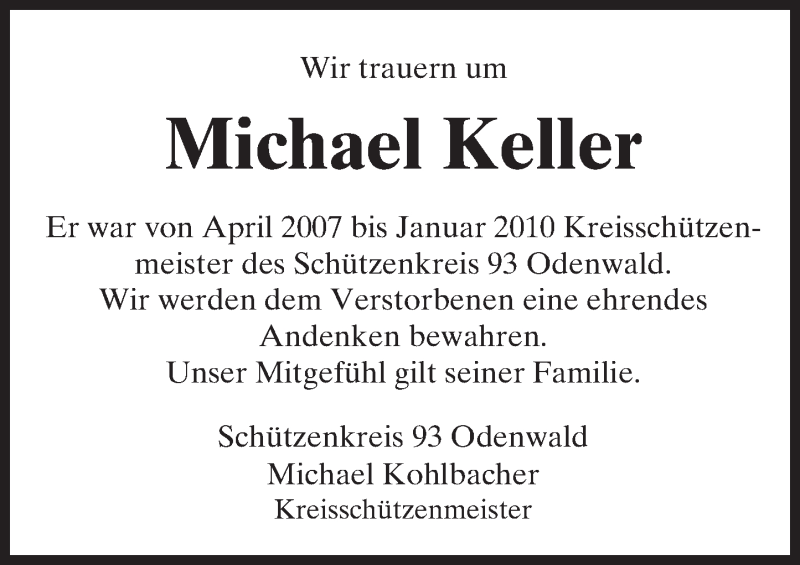 Hier finden Sie alle Traueranzeigen aus der Zeitung, die bisher für Michael Keller erschienen sind. Weitere Traueranzeigen, die in der Zeitung erscheinen, werden hier ebenfalls aufgelistet