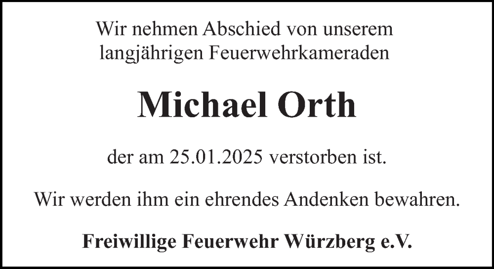 Hier finden Sie alle Traueranzeigen aus der Zeitung, die bisher für Michael Orth erschienen sind. Weitere Traueranzeigen, die in der Zeitung erscheinen, werden hier ebenfalls aufgelistet