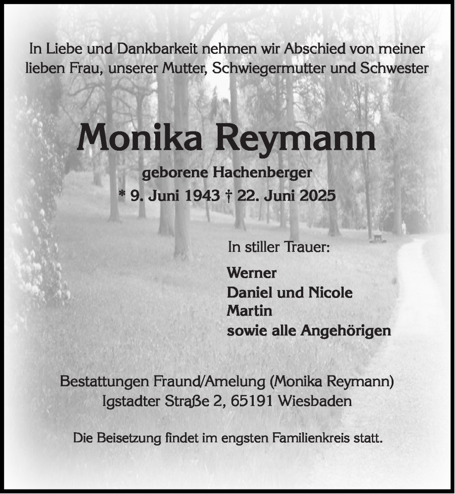 Hier finden Sie alle Traueranzeigen aus der Zeitung, die bisher für Monika Reymann erschienen sind. Weitere Traueranzeigen, die in der Zeitung erscheinen, werden hier ebenfalls aufgelistet
