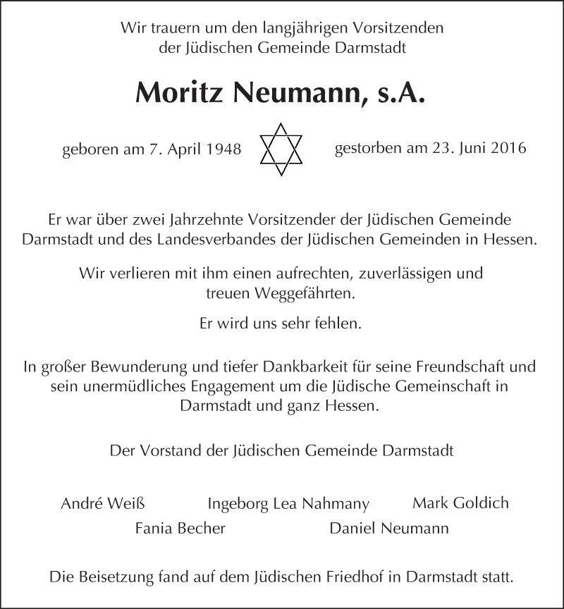 Hier finden Sie alle Traueranzeigen aus der Zeitung, die bisher für Moritz Neumann erschienen sind. Weitere Traueranzeigen, die in der Zeitung erscheinen, werden hier ebenfalls aufgelistet