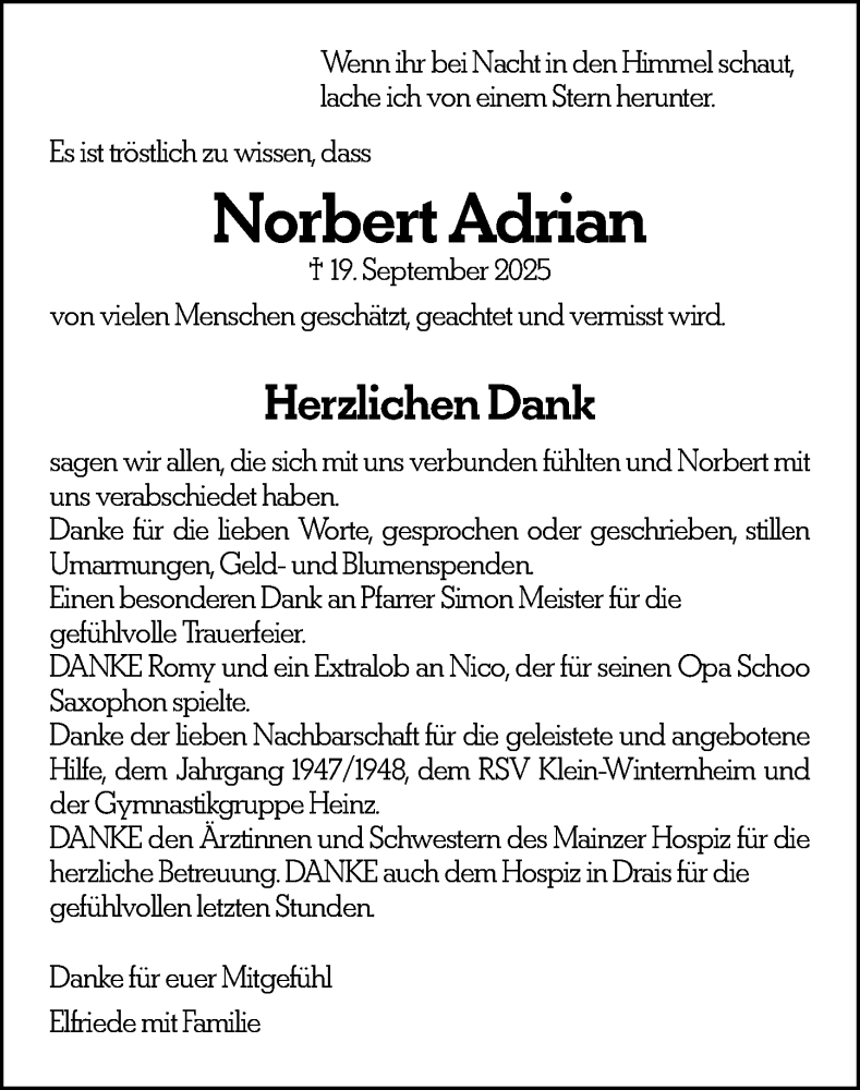 Hier finden Sie alle Traueranzeigen aus der Zeitung, die bisher für Norbert Adrian erschienen sind. Weitere Traueranzeigen, die in der Zeitung erscheinen, werden hier ebenfalls aufgelistet