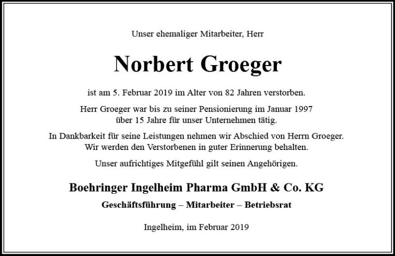 Hier finden Sie alle Traueranzeigen aus der Zeitung, die bisher für Norbert Groeger erschienen sind. Weitere Traueranzeigen, die in der Zeitung erscheinen, werden hier ebenfalls aufgelistet