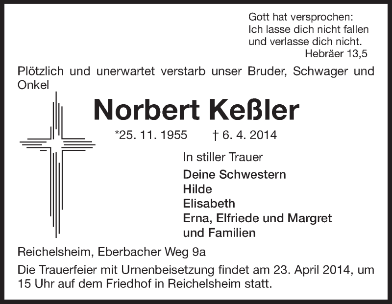 Hier finden Sie alle Traueranzeigen aus der Zeitung, die bisher für Norbert Keßler erschienen sind. Weitere Traueranzeigen, die in der Zeitung erscheinen, werden hier ebenfalls aufgelistet