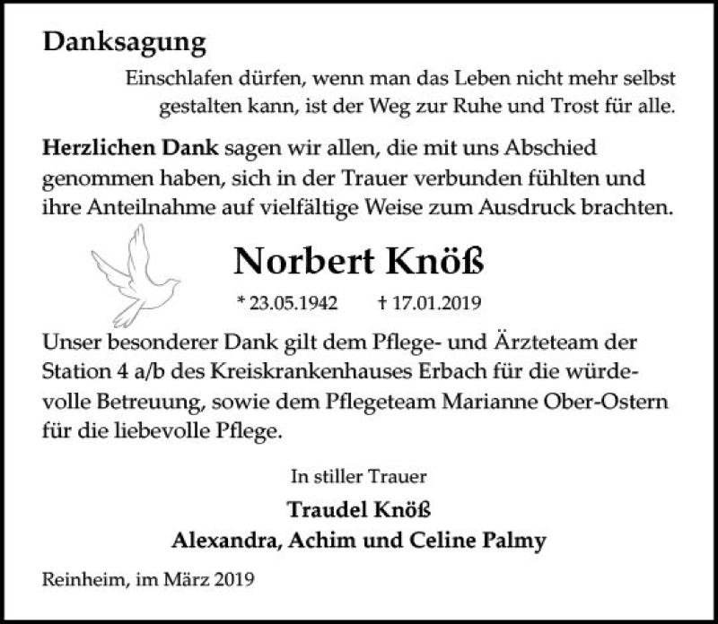 Hier finden Sie alle Traueranzeigen aus der Zeitung, die bisher für Norbert Knöß erschienen sind. Weitere Traueranzeigen, die in der Zeitung erscheinen, werden hier ebenfalls aufgelistet