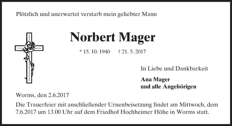 Hier finden Sie alle Traueranzeigen aus der Zeitung, die bisher für Norbert Mager erschienen sind. Weitere Traueranzeigen, die in der Zeitung erscheinen, werden hier ebenfalls aufgelistet