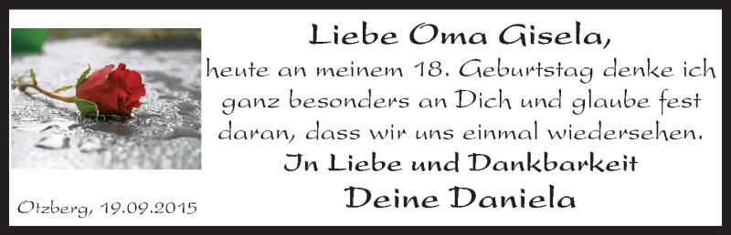 Hier finden Sie alle Traueranzeigen aus der Zeitung, die bisher für Oma Gisela erschienen sind. Weitere Traueranzeigen, die in der Zeitung erscheinen, werden hier ebenfalls aufgelistet