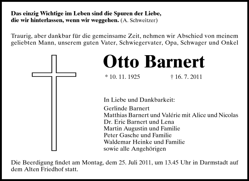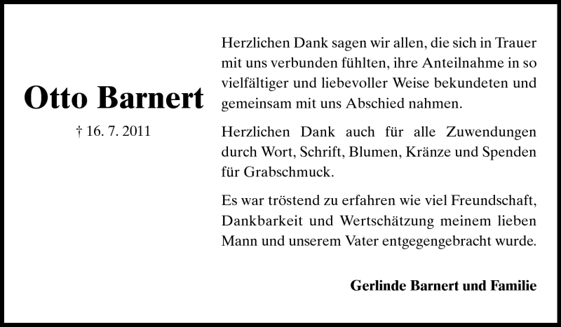 Hier finden Sie alle Traueranzeigen aus der Zeitung, die bisher für Otto Barnert erschienen sind. Weitere Traueranzeigen, die in der Zeitung erscheinen, werden hier ebenfalls aufgelistet