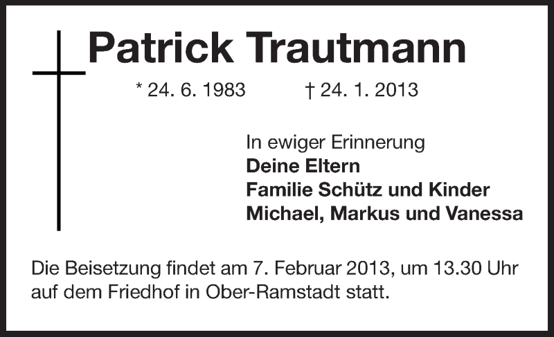 Hier finden Sie alle Traueranzeigen aus der Zeitung, die bisher für Patrick Trautmann erschienen sind. Weitere Traueranzeigen, die in der Zeitung erscheinen, werden hier ebenfalls aufgelistet