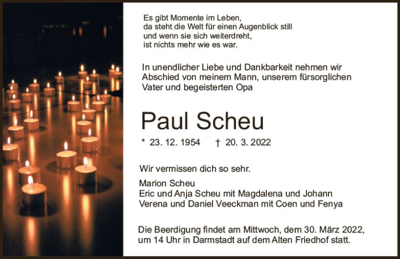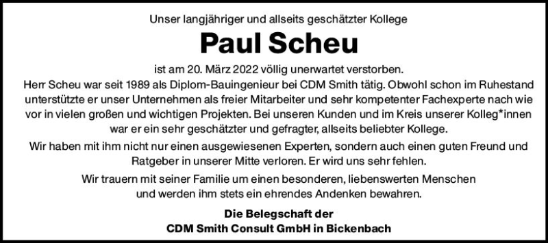 Hier finden Sie alle Traueranzeigen aus der Zeitung, die bisher für Paul Scheu erschienen sind. Weitere Traueranzeigen, die in der Zeitung erscheinen, werden hier ebenfalls aufgelistet