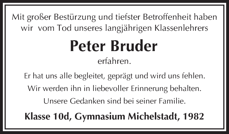 Hier finden Sie alle Traueranzeigen aus der Zeitung, die bisher für Peter Bruder erschienen sind. Weitere Traueranzeigen, die in der Zeitung erscheinen, werden hier ebenfalls aufgelistet