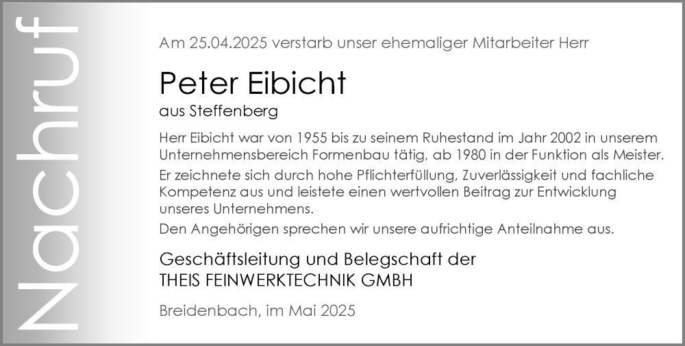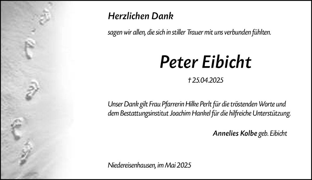 Hier finden Sie alle Traueranzeigen aus der Zeitung, die bisher für Peter Eibicht erschienen sind. Weitere Traueranzeigen, die in der Zeitung erscheinen, werden hier ebenfalls aufgelistet