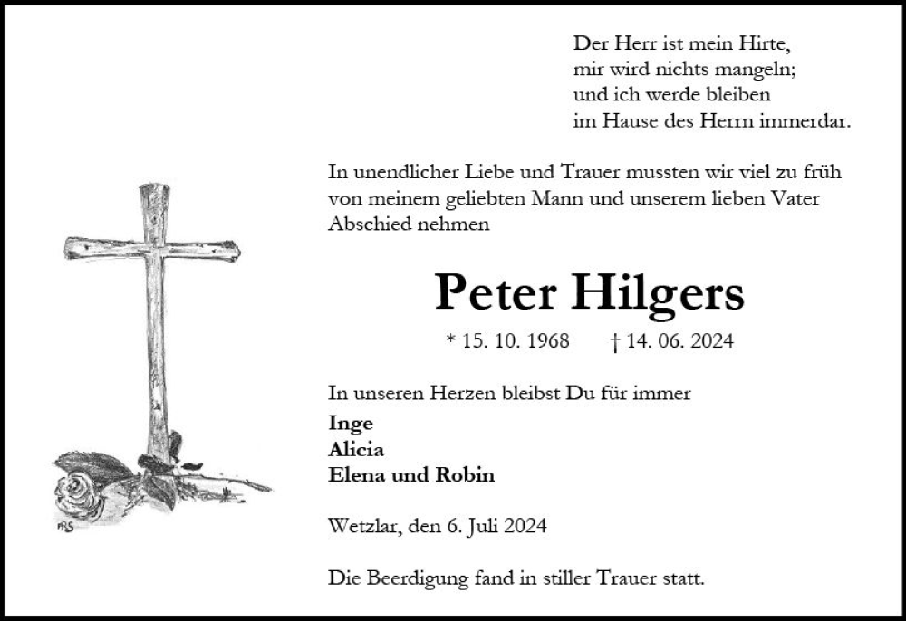 Hier finden Sie alle Traueranzeigen aus der Zeitung, die bisher für Peter Hilgers erschienen sind. Weitere Traueranzeigen, die in der Zeitung erscheinen, werden hier ebenfalls aufgelistet