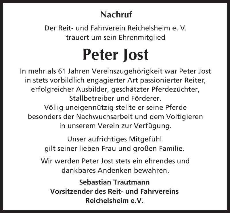 Hier finden Sie alle Traueranzeigen aus der Zeitung, die bisher für Peter Jost erschienen sind. Weitere Traueranzeigen, die in der Zeitung erscheinen, werden hier ebenfalls aufgelistet