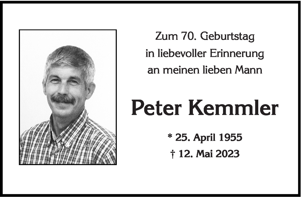 Hier finden Sie alle Traueranzeigen aus der Zeitung, die bisher für Peter Kemmler erschienen sind. Weitere Traueranzeigen, die in der Zeitung erscheinen, werden hier ebenfalls aufgelistet