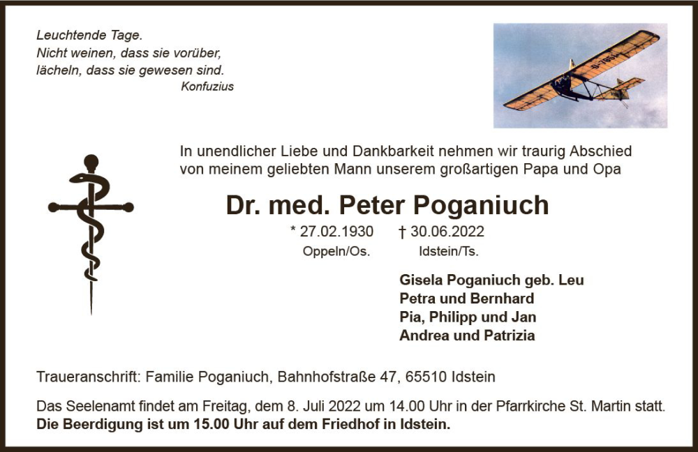 Hier finden Sie alle Traueranzeigen aus der Zeitung, die bisher für Peter Poganiuch erschienen sind. Weitere Traueranzeigen, die in der Zeitung erscheinen, werden hier ebenfalls aufgelistet