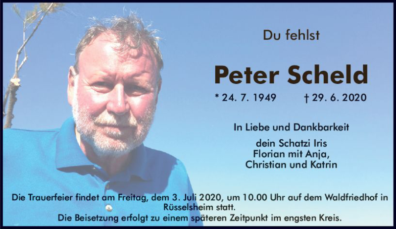 Hier finden Sie alle Traueranzeigen aus der Zeitung, die bisher für Peter Scheld erschienen sind. Weitere Traueranzeigen, die in der Zeitung erscheinen, werden hier ebenfalls aufgelistet