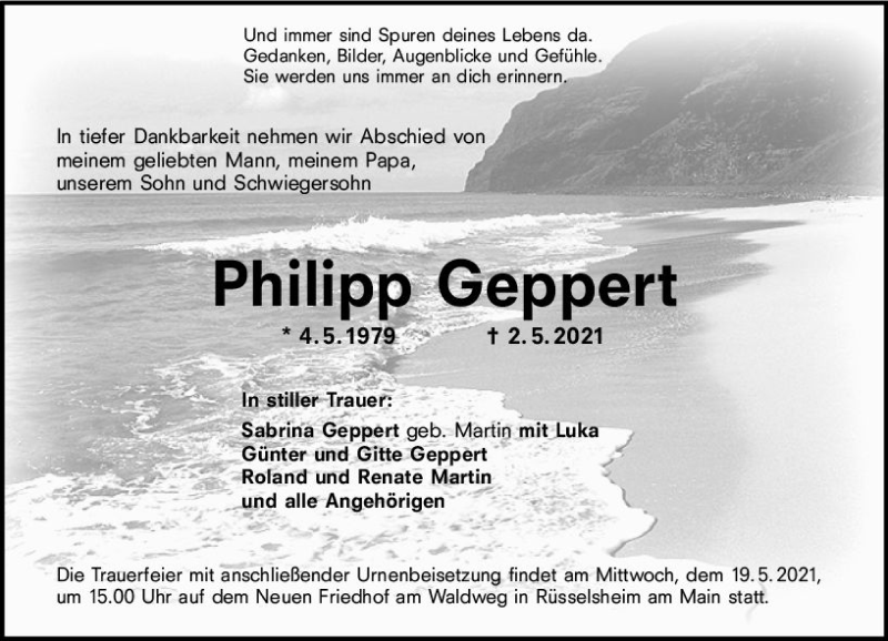Hier finden Sie alle Traueranzeigen aus der Zeitung, die bisher für Philipp Geppert erschienen sind. Weitere Traueranzeigen, die in der Zeitung erscheinen, werden hier ebenfalls aufgelistet
