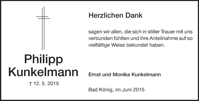 Hier finden Sie alle Traueranzeigen aus der Zeitung, die bisher für Philipp Kunkelmann erschienen sind. Weitere Traueranzeigen, die in der Zeitung erscheinen, werden hier ebenfalls aufgelistet