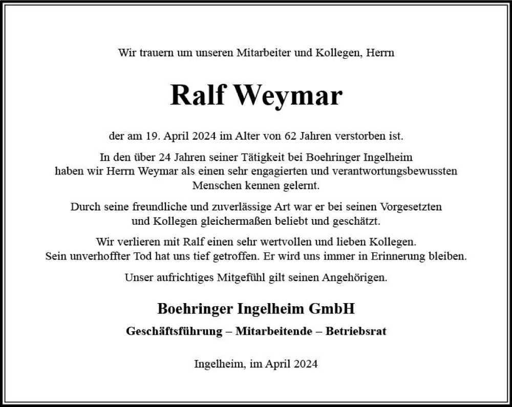 Hier finden Sie alle Traueranzeigen aus der Zeitung, die bisher für Ralf Weymar erschienen sind. Weitere Traueranzeigen, die in der Zeitung erscheinen, werden hier ebenfalls aufgelistet