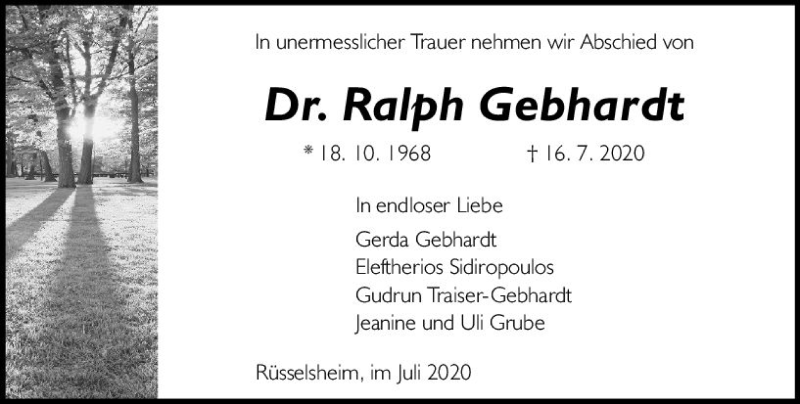 Hier finden Sie alle Traueranzeigen aus der Zeitung, die bisher für Ralph Gebhardt erschienen sind. Weitere Traueranzeigen, die in der Zeitung erscheinen, werden hier ebenfalls aufgelistet