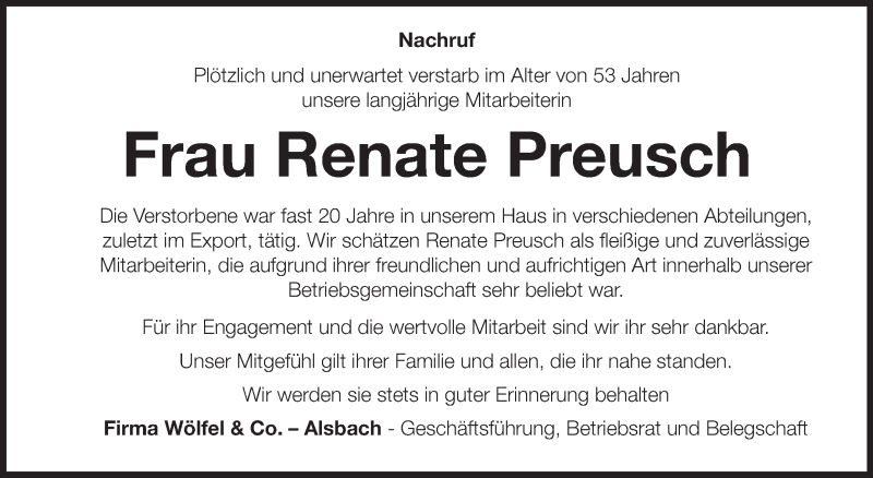 Hier finden Sie alle Traueranzeigen aus der Zeitung, die bisher für Renate Preusch erschienen sind. Weitere Traueranzeigen, die in der Zeitung erscheinen, werden hier ebenfalls aufgelistet