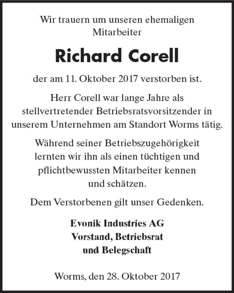 Hier finden Sie alle Traueranzeigen aus der Zeitung, die bisher für Richard Corell erschienen sind. Weitere Traueranzeigen, die in der Zeitung erscheinen, werden hier ebenfalls aufgelistet