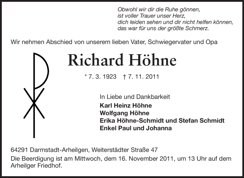 Hier finden Sie alle Traueranzeigen aus der Zeitung, die bisher für Richard Höhne erschienen sind. Weitere Traueranzeigen, die in der Zeitung erscheinen, werden hier ebenfalls aufgelistet