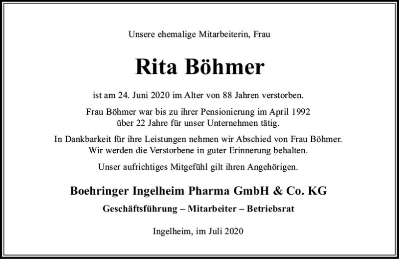 Hier finden Sie alle Traueranzeigen aus der Zeitung, die bisher für Rita Böhmer erschienen sind. Weitere Traueranzeigen, die in der Zeitung erscheinen, werden hier ebenfalls aufgelistet