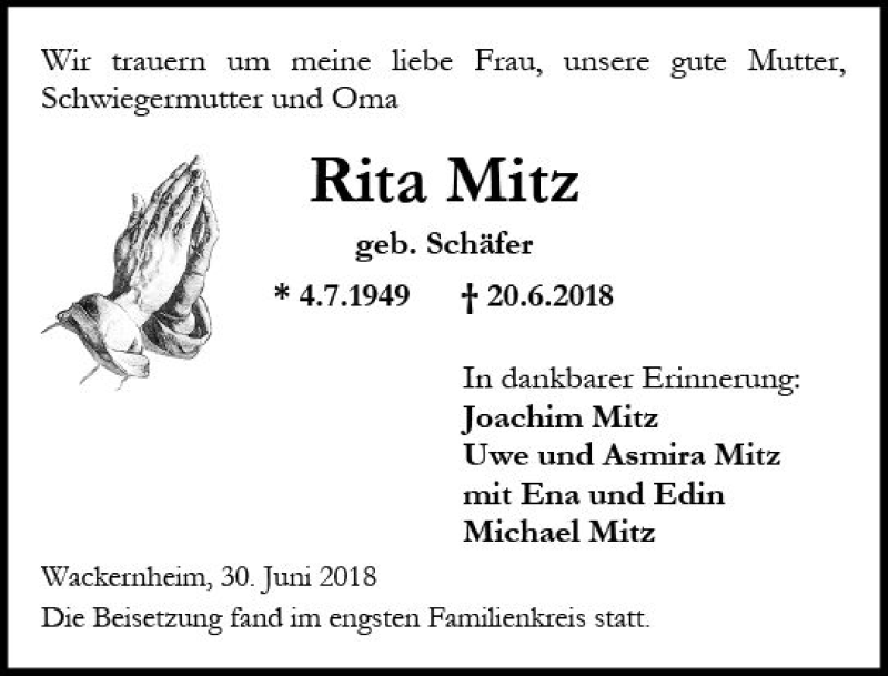 Hier finden Sie alle Traueranzeigen aus der Zeitung, die bisher für Rita Mitz erschienen sind. Weitere Traueranzeigen, die in der Zeitung erscheinen, werden hier ebenfalls aufgelistet