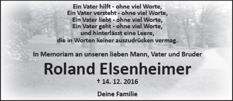 Hier finden Sie alle Traueranzeigen aus der Zeitung, die bisher für Roland Elsenheimer erschienen sind. Weitere Traueranzeigen, die in der Zeitung erscheinen, werden hier ebenfalls aufgelistet