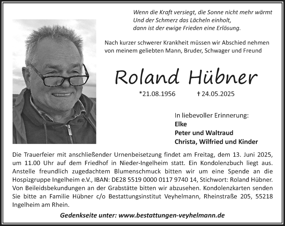 Hier finden Sie alle Traueranzeigen aus der Zeitung, die bisher für Roland Hübner erschienen sind. Weitere Traueranzeigen, die in der Zeitung erscheinen, werden hier ebenfalls aufgelistet