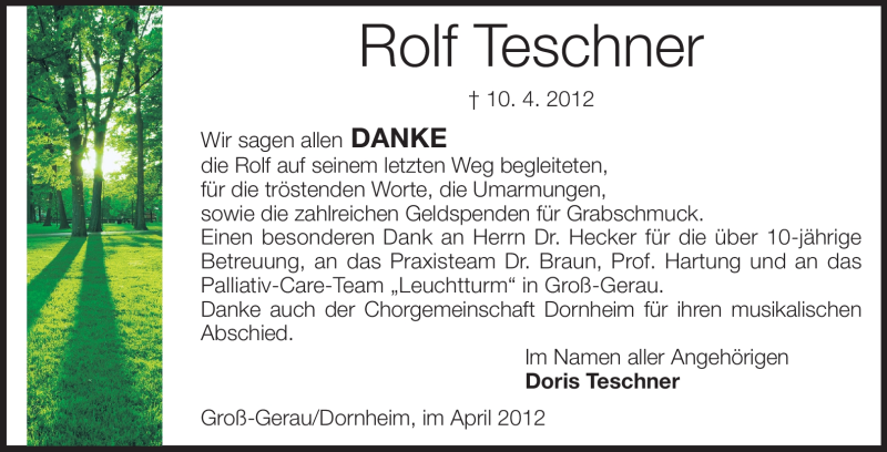 Hier finden Sie alle Traueranzeigen aus der Zeitung, die bisher für Rolf Teschner erschienen sind. Weitere Traueranzeigen, die in der Zeitung erscheinen, werden hier ebenfalls aufgelistet