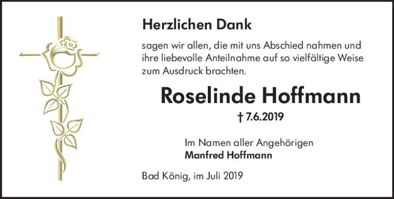 Hier finden Sie alle Traueranzeigen aus der Zeitung, die bisher für Roselinde Hoffmann erschienen sind. Weitere Traueranzeigen, die in der Zeitung erscheinen, werden hier ebenfalls aufgelistet