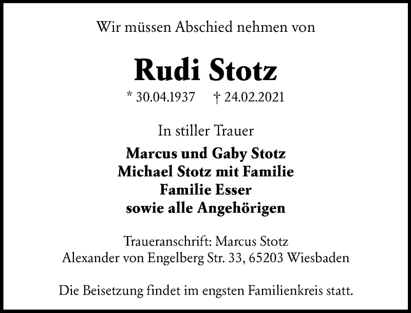 Hier finden Sie alle Traueranzeigen aus der Zeitung, die bisher für Rudi Stotz erschienen sind. Weitere Traueranzeigen, die in der Zeitung erscheinen, werden hier ebenfalls aufgelistet