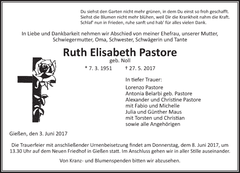 Hier finden Sie alle Traueranzeigen aus der Zeitung, die bisher für Ruth Elisabeth Pastore erschienen sind. Weitere Traueranzeigen, die in der Zeitung erscheinen, werden hier ebenfalls aufgelistet