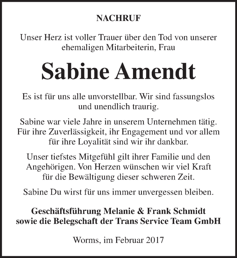 Hier finden Sie alle Traueranzeigen aus der Zeitung, die bisher für Sabine Amendt erschienen sind. Weitere Traueranzeigen, die in der Zeitung erscheinen, werden hier ebenfalls aufgelistet