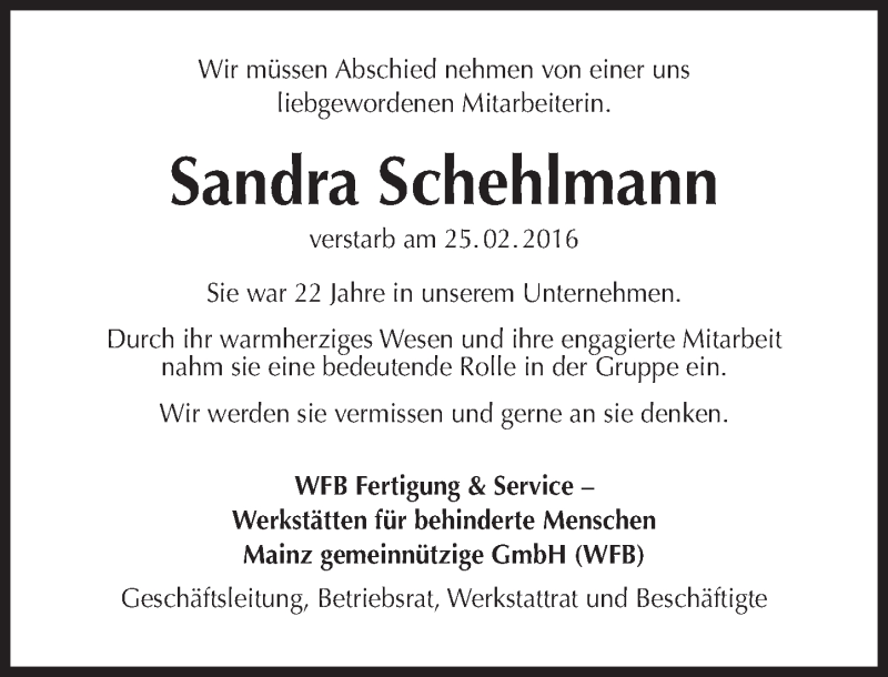 Hier finden Sie alle Traueranzeigen aus der Zeitung, die bisher für Sandra Schehlmann erschienen sind. Weitere Traueranzeigen, die in der Zeitung erscheinen, werden hier ebenfalls aufgelistet