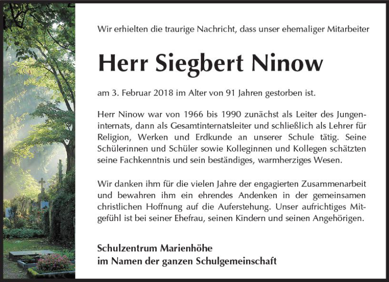Hier finden Sie alle Traueranzeigen aus der Zeitung, die bisher für Siegbert Ninow erschienen sind. Weitere Traueranzeigen, die in der Zeitung erscheinen, werden hier ebenfalls aufgelistet