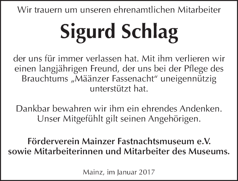 Hier finden Sie alle Traueranzeigen aus der Zeitung, die bisher für Sigurd Schlag erschienen sind. Weitere Traueranzeigen, die in der Zeitung erscheinen, werden hier ebenfalls aufgelistet