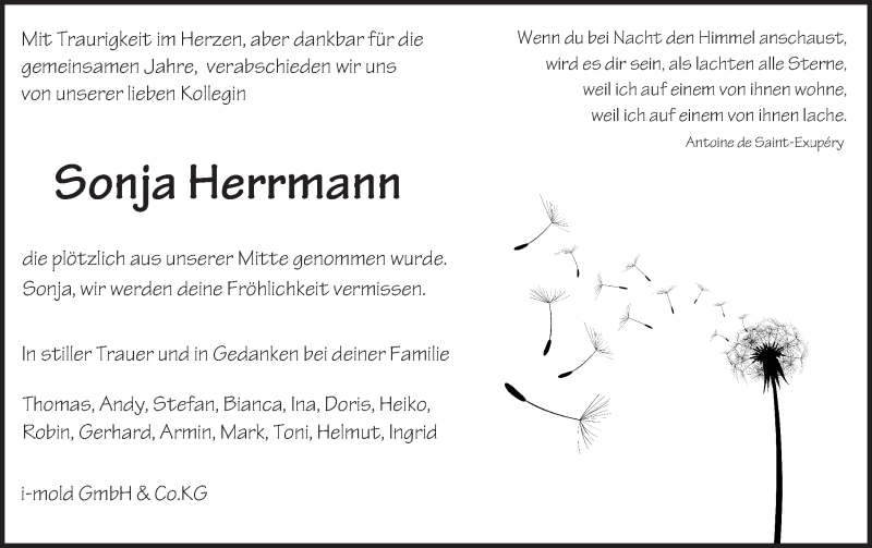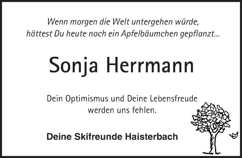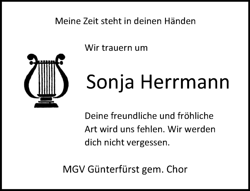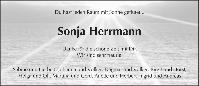 Hier finden Sie alle Traueranzeigen aus der Zeitung, die bisher für Sonja Herrmann erschienen sind. Weitere Traueranzeigen, die in der Zeitung erscheinen, werden hier ebenfalls aufgelistet