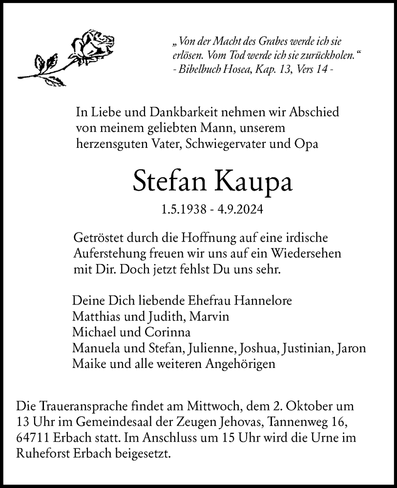 Hier finden Sie alle Traueranzeigen aus der Zeitung, die bisher für Stefan Kaupa erschienen sind. Weitere Traueranzeigen, die in der Zeitung erscheinen, werden hier ebenfalls aufgelistet