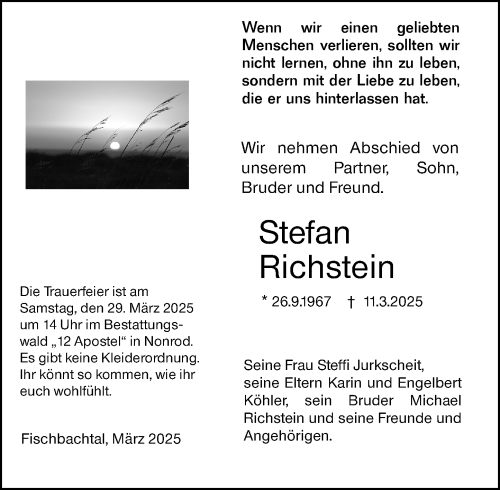 Hier finden Sie alle Traueranzeigen aus der Zeitung, die bisher für Stefan Richstein erschienen sind. Weitere Traueranzeigen, die in der Zeitung erscheinen, werden hier ebenfalls aufgelistet
