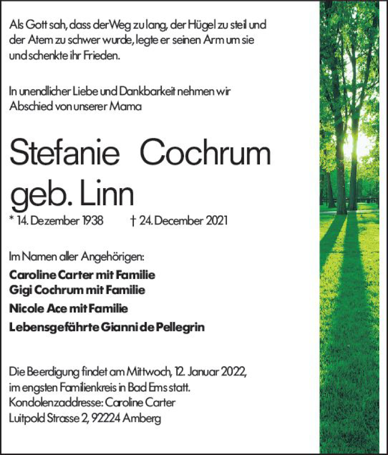 Hier finden Sie alle Traueranzeigen aus der Zeitung, die bisher für Stefanie Cochrum erschienen sind. Weitere Traueranzeigen, die in der Zeitung erscheinen, werden hier ebenfalls aufgelistet