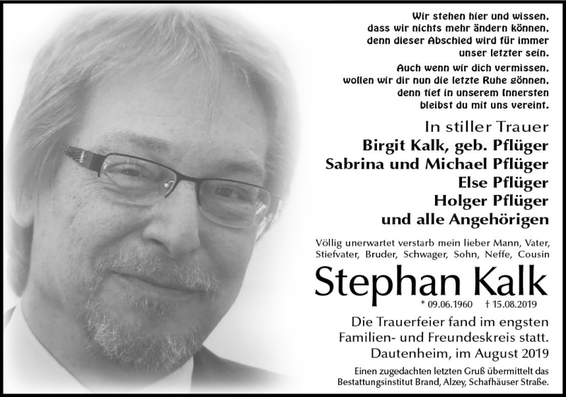 Hier finden Sie alle Traueranzeigen aus der Zeitung, die bisher für Stephan Kalk erschienen sind. Weitere Traueranzeigen, die in der Zeitung erscheinen, werden hier ebenfalls aufgelistet