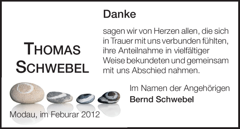 Hier finden Sie alle Traueranzeigen aus der Zeitung, die bisher für Thomas Schwebel erschienen sind. Weitere Traueranzeigen, die in der Zeitung erscheinen, werden hier ebenfalls aufgelistet