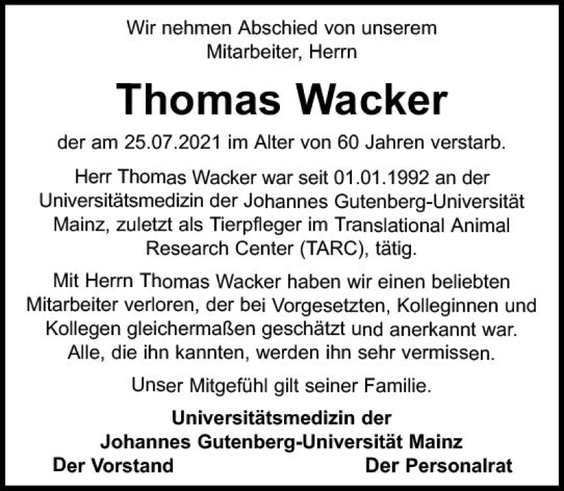 Hier finden Sie alle Traueranzeigen aus der Zeitung, die bisher für Thomas Wacker erschienen sind. Weitere Traueranzeigen, die in der Zeitung erscheinen, werden hier ebenfalls aufgelistet