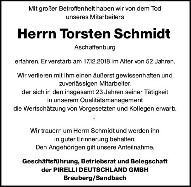 Hier finden Sie alle Traueranzeigen aus der Zeitung, die bisher für Torsten Schmidt erschienen sind. Weitere Traueranzeigen, die in der Zeitung erscheinen, werden hier ebenfalls aufgelistet
