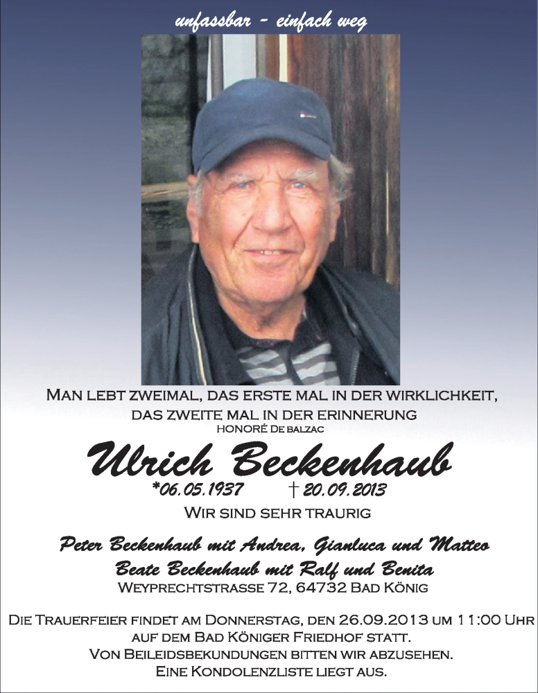 Hier finden Sie alle Traueranzeigen aus der Zeitung, die bisher für Ulrich Beckenhaub erschienen sind. Weitere Traueranzeigen, die in der Zeitung erscheinen, werden hier ebenfalls aufgelistet