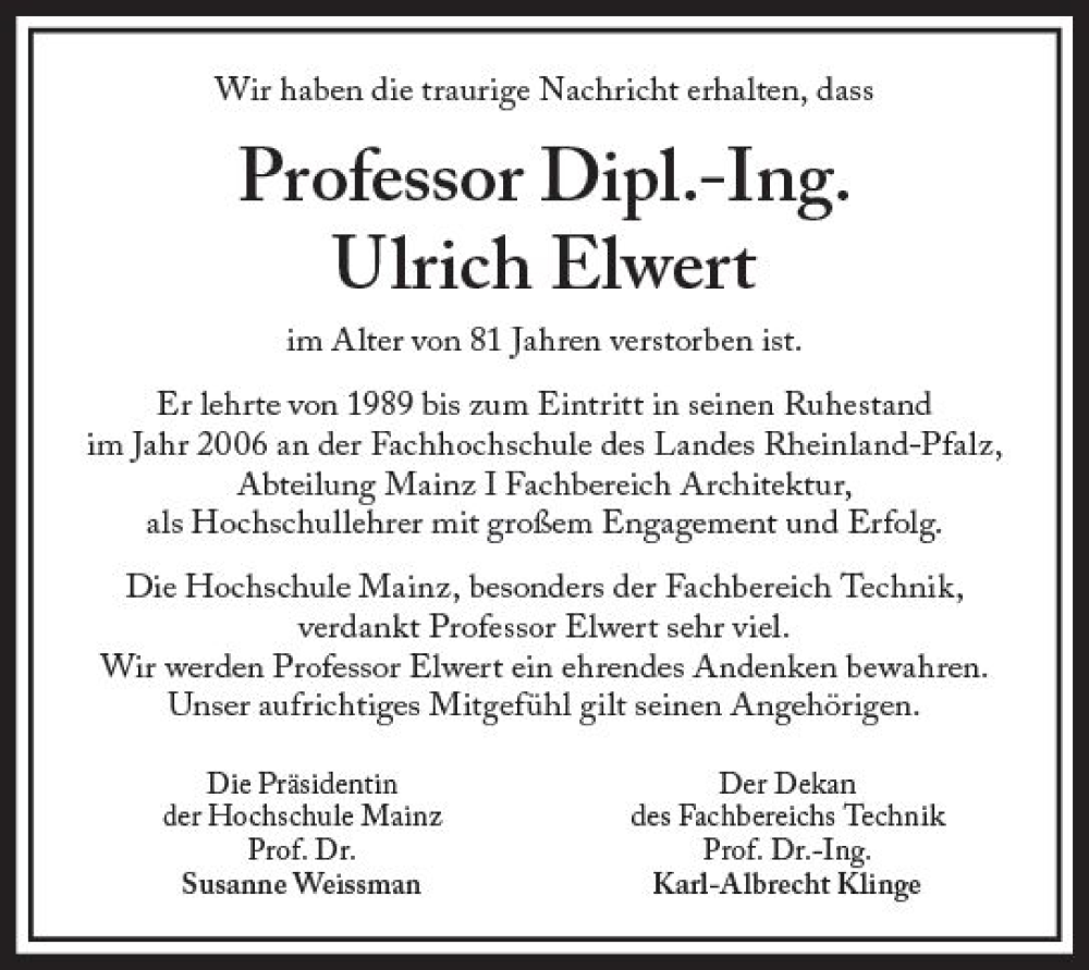 Hier finden Sie alle Traueranzeigen aus der Zeitung, die bisher für Ulrich Elwert erschienen sind. Weitere Traueranzeigen, die in der Zeitung erscheinen, werden hier ebenfalls aufgelistet