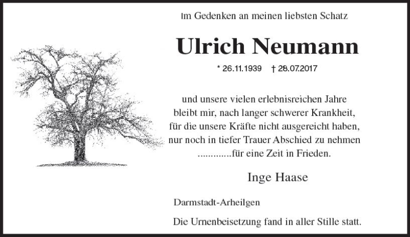 Hier finden Sie alle Traueranzeigen aus der Zeitung, die bisher für Ulrich Neumann erschienen sind. Weitere Traueranzeigen, die in der Zeitung erscheinen, werden hier ebenfalls aufgelistet